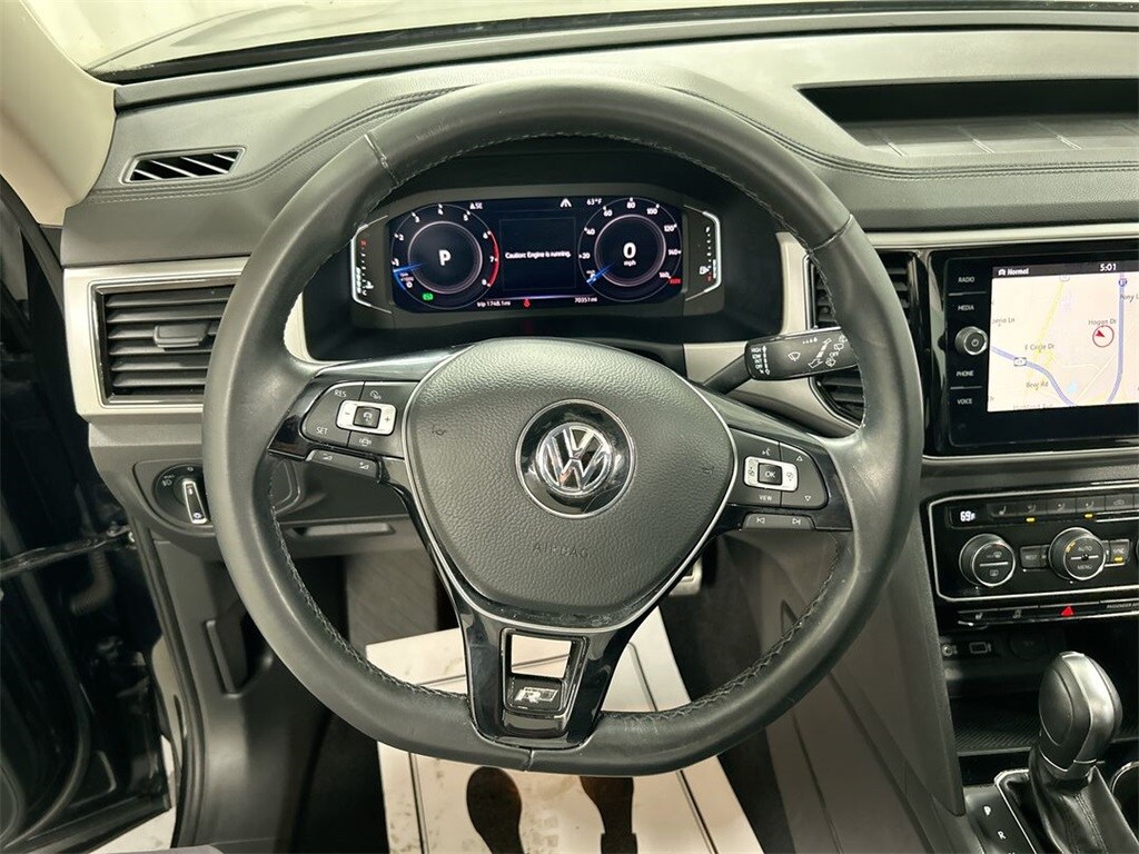 The Atlas has an infotainment system that is easy to use and intuitive, and it allows for swiping and pinch zooming. Apple Car Play is awesome! Surprisingly, some manufacturers have not integrated this feature at this time. The digital instrument panel has a very nice, modern look, and it offers 5 or 6 different views. One of the really cool things about the Atlas- you can display the nav map in the middle of the instrument panel. Additionally, you can make the map bigger and the gauges smaller, which allows you to see more map detail- a really nice option. The car even has an altimeter, which is really cool to me (I’m a pilot by trade). Not so much for my wife…